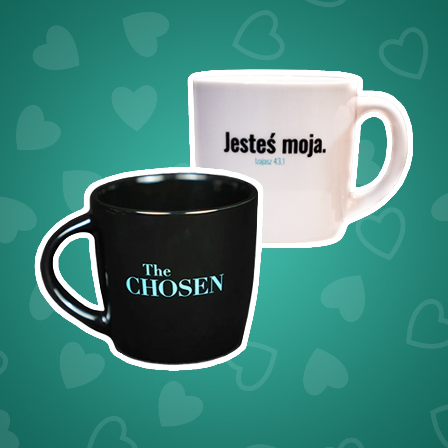 Walentynki - zestaw kubków biały i czarny, -50% na drugi kubek